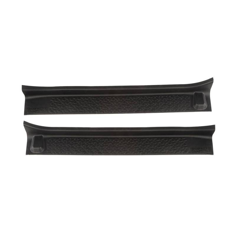 Rugged Ridge created these All Terrain Door Entry Guards to prevent the unsightly scuffs and scratches that happen just by climbing in and out of your Jeep. Defending those unprotected door sills couldn t be any easier. When you install these Door Entry Guards you ll be preserving your precious paint and adding a cool accent at the same time. Constructed of a super-tough thermoplastic each guard features an inlaid all-terrain tread pattern so they look just as great as they work- whether the doors are on or off. And installation is a breeze with the provided automotive-grade adhesive foam tape. Sets are available for both 2 and 4-Door JL models. Patent No. D627 285