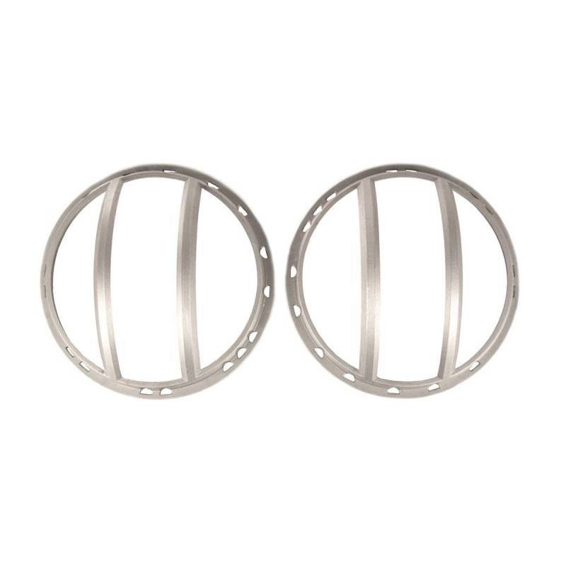 This pair of raw aluminum headlight euro guards from Rugged Ridge fit 07-18 Jeep Wrangler JK/JKU.